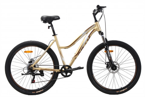 Цвет # Золотисто Серый Материал рамы # алюминий Тип тормозов # дисковый механический Диаметр колес # 27.5 Рама # 19" (на рост 171-182) Вилка # STEEL ход 80 мм, пружинно-эластомерная Количество скоростей # 7 Передний переключатель # - Задний переключатель # LTWOO A2 или Shimano TZ500 (зависит от партии) Передний тормоз # YinXIng или JAK-8 mech. disc 160 механический Задний тормоз # YinXIng или JAK-8 mech. disc 160 механический Манетки # LTWOO A2 триггер Shimano ST-EF-41 (зависит от партии) Шатуны # 1ск. 36Т 170MM алюминий Каретка # FP Feimin картридж Задние звезды # ATA 7 скоростей трещетка Втулки # сталь Shengfu подшипники насыпные или на промах (зависит от партии) Покрышки # Compas 27.5*2.0 Обода # двойной DA-18 Цепь # KMC C050 Руль # Lorak стальной 680W Вынос # Lorak стальной подъемный Подседельный штырь # Lorak 27.2*300MM Рулевая колонка # Neco резьбовая Седло # Lorak 6558 Педали # пластик FP Вес # 15,9 кг